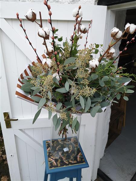 Stunning mixed Christmas foliage with cotton stems and pussywillow absolutely perfect in any vase, dries out beautifully too.